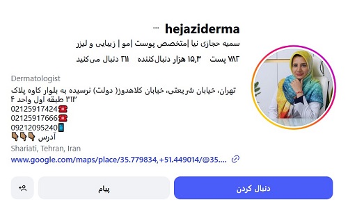 پوست و مو و زیباییدکتر سمیه حجازی، متخصص پوست با بیش از ۱۰ سال تجربه در زمینه پزشکی و طبابت، در حوزههای درمانی و زیبایی فعالیت میکنند. ایشان خدمات تخصصی خود را در کلینیک شخصی و همچنین در کلینیک پوست بهروز به بیماران ارائه میدهند.